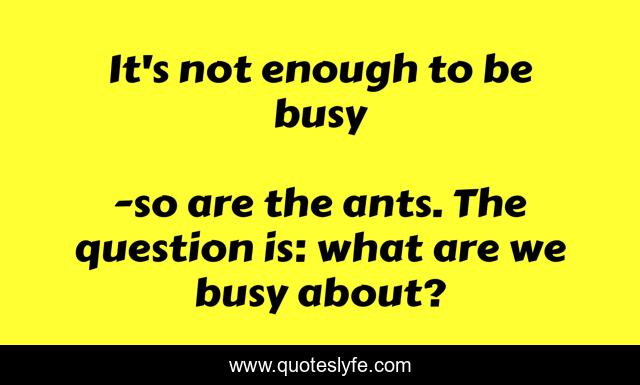 "so are the ants. The question is: what are we busy about? Quotes." Quoteslyfe.com, 2025. Fri. 05 Dec. 2025. <https://www.quoteslyfe.com/quote/It-s-not-enough-to-be-busy-257975>.