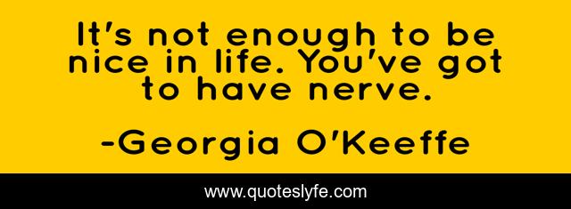 This page presents the quote "It's not enough to be nice in life. You've got to have nerve.". Author of this quote is Georgia O'Keeffe. This quote is about art, georgia-o-keeffe, women-s-issues, inspirational, enthusiasm, wisdom,.