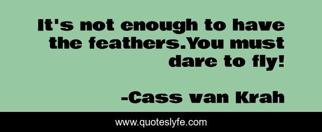 This page presents the quote "It's not enough to have the feathers.You must dare to fly!". Author of this quote is Cass van Krah. This quote is about brave, freedom, feathers, courage, fear, courage-to-be-oneself,.