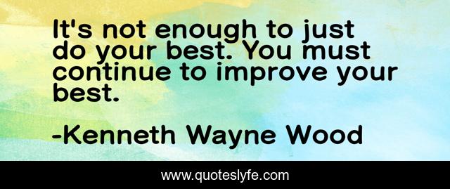 This page presents the quote "It's not enough to just do your best. You must continue to improve your best.". Author of this quote is Kenneth Wayne Wood. This quote is about do-your-best, self-improvement, improve,.