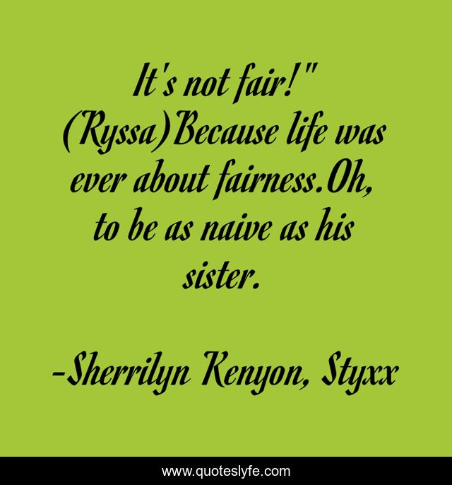 This page presents the quote "It's not fair!" (Ryssa)Because life was ever about fairness.Oh, to be as naive as his sister.". Author of this quote is Sherrilyn Kenyon, Styxx. This quote is about funny, comedy,.