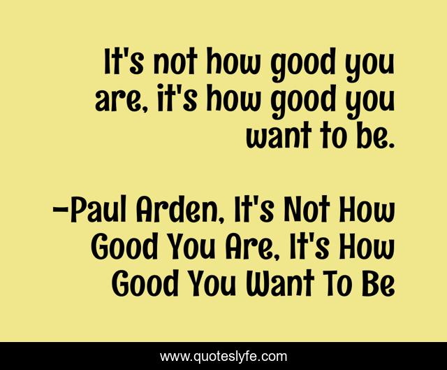 "Paul Arden, It's Not How Good You Are, It's How Good You Want To Be Quotes." Quoteslyfe.com, 2025. Sun. 07 Dec. 2025. <https://www.quoteslyfe.com/quote/It-s-not-how-good-you-are-77687>.