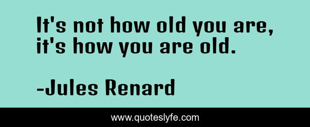 This page presents the quote "It's not how old you are, it's how you are old.". Author of this quote is Jules Renard. This quote is about living, aging-gracefully, inspirational, old-age, enthusiasm,.