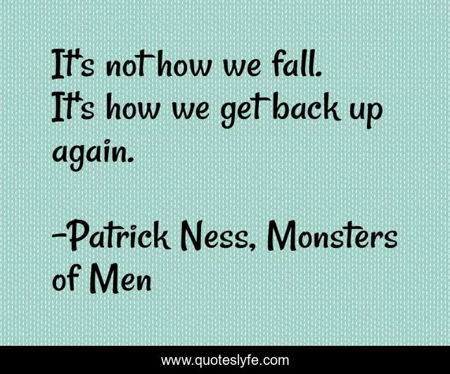 This page presents the quote "It's not how we fall. It's how we get back up again.". Author of this quote is Patrick Ness, Monsters of Men. .