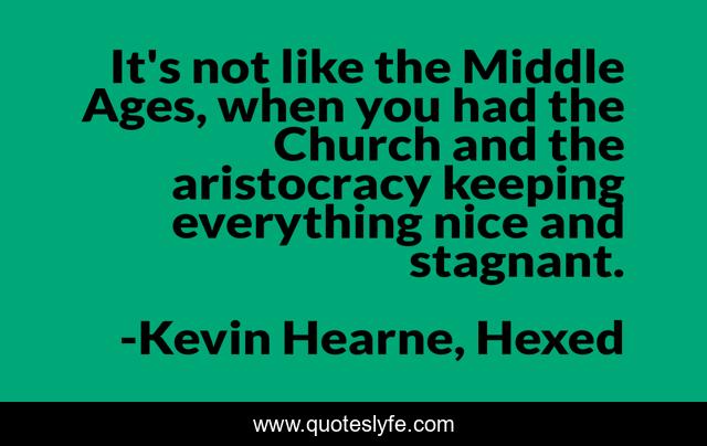 This page presents the quote "It's not like the Middle Ages, when you had the Church and the aristocracy keeping everything nice and stagnant.". Author of this quote is Kevin Hearne, Hexed. This quote is about progress, humor, religion,.