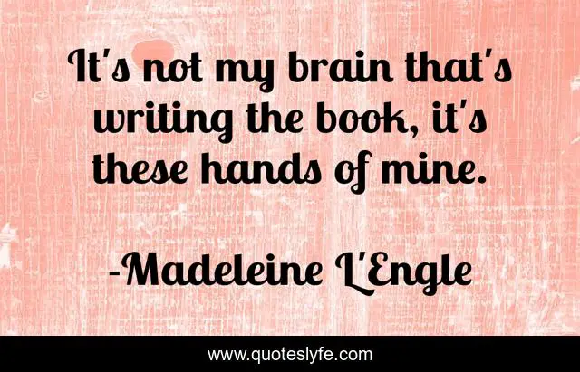 This page presents the quote "It's not my brain that's writing the book, it's these hands of mine.". Author of this quote is Madeleine L'Engle. .