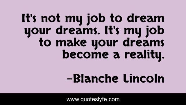 This page presents the quote "It's not my job to dream your dreams. It's my job to make your dreams become a reality.". Author of this quote is Blanche Lincoln. This quote is about your dreams, job, reality,.