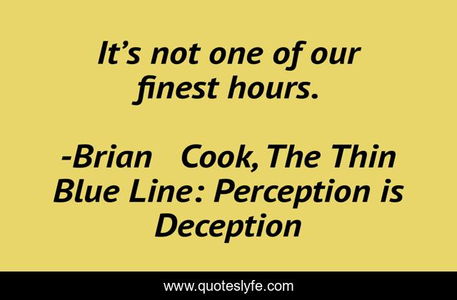 "Brian Cook, The Thin Blue Line: Perception is Deception Quotes." Quoteslyfe.com, 2025. Mon. 08 Dec. 2025. <https://www.quoteslyfe.com/quote/It-s-not-one-of-our-finest-165657>.