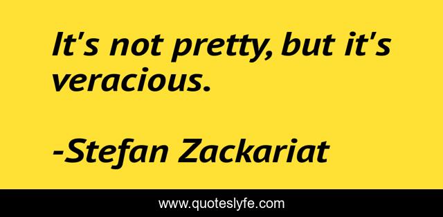 This page presents the quote "It's not pretty, but it's veracious.". Author of this quote is Stefan Zackariat. This quote is about life, honesty, people, nature, truth, history,.