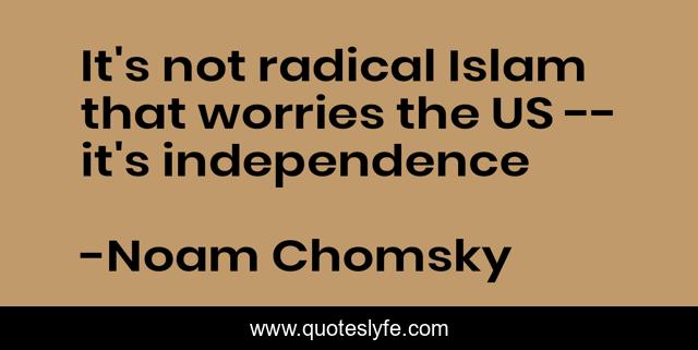 This page presents the quote "It's not radical Islam that worries the US -- it's independence". Author of this quote is Noam Chomsky. This quote is about islam, america, united-states, us, independence,.