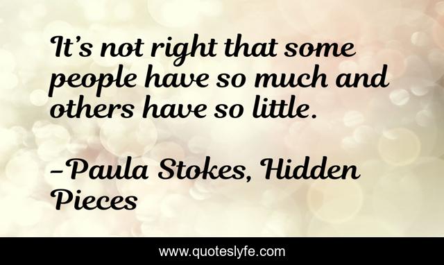 This page presents the quote "It’s not right that some people have so much and others have so little.". Author of this quote is Paula Stokes, Hidden Pieces. This quote is about inequality, poverty,.