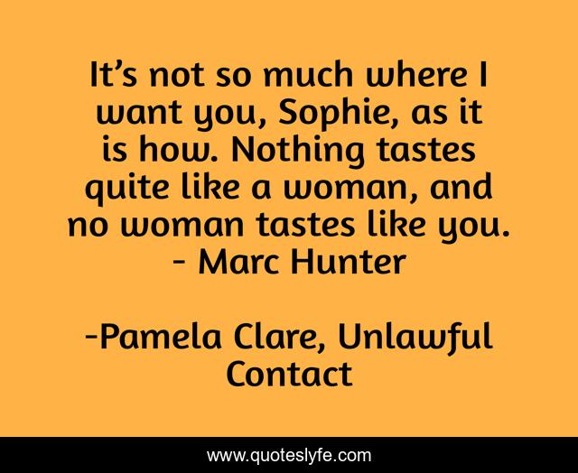 It’s not so much where I want you, Sophie, as it is how. Nothing tastes quite like a woman, and no woman tastes like you. - Marc Hunter
