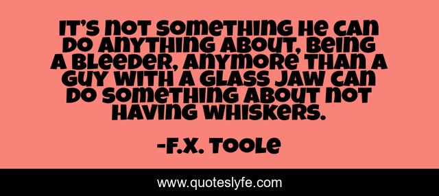 This page presents the quote "It’s not something he can do anything about, being a bleeder, anymore than a guy with a glass jaw can do something about not having whiskers.". Author of this quote is F.X. Toole. .