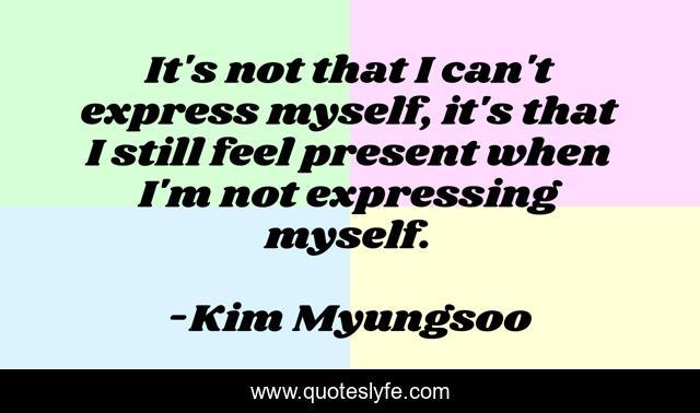 This page presents the quote "It's not that I can't express myself, it's that I still feel present when I'm not expressing myself.". Author of this quote is Kim Myungsoo. This quote is about funny, confidence, comedy, humor, truth,.