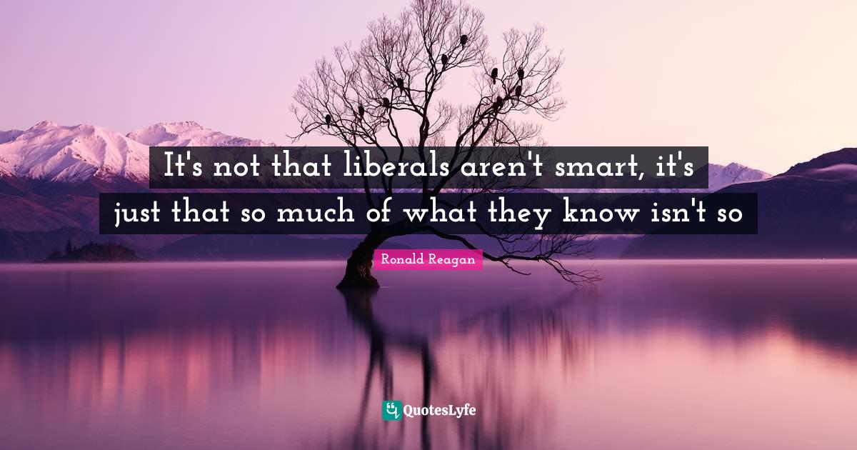 This page presents the quote "It's not that liberals aren't smart, it's just that so much of what they know isn't so". Author of this quote is Ronald Reagan. This quote is about smart, knows,.