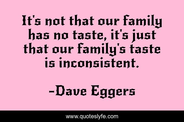 This page presents the quote "It's not that our family has no taste, it's just that our family's taste is inconsistent.". Author of this quote is Dave Eggers. This quote is about taste, inconsistent, just,.