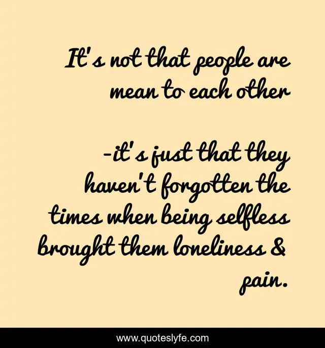 "it's just that they haven't forgotten the times when being selfless brought them loneliness & pain. Quotes." Quoteslyfe.com, 2025. Sat. 06 Dec. 2025. <https://www.quoteslyfe.com/quote/It-s-not-that-people-are-mean-139280>.