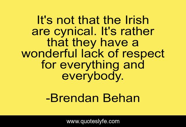 This page presents the quote "It's not that the Irish are cynical. It's rather that they have a wonderful lack of respect for everything and everybody.". Author of this quote is Brendan Behan. .