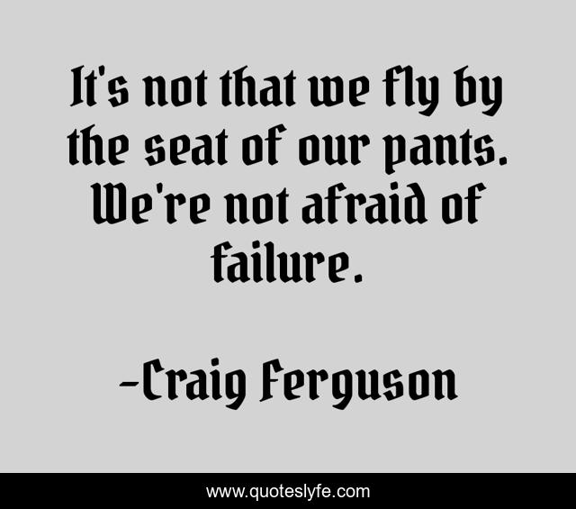 This page presents the quote "It's not that we fly by the seat of our pants. We're not afraid of failure.". Author of this quote is Craig Ferguson. This quote is about fly, afraid, pants,.
