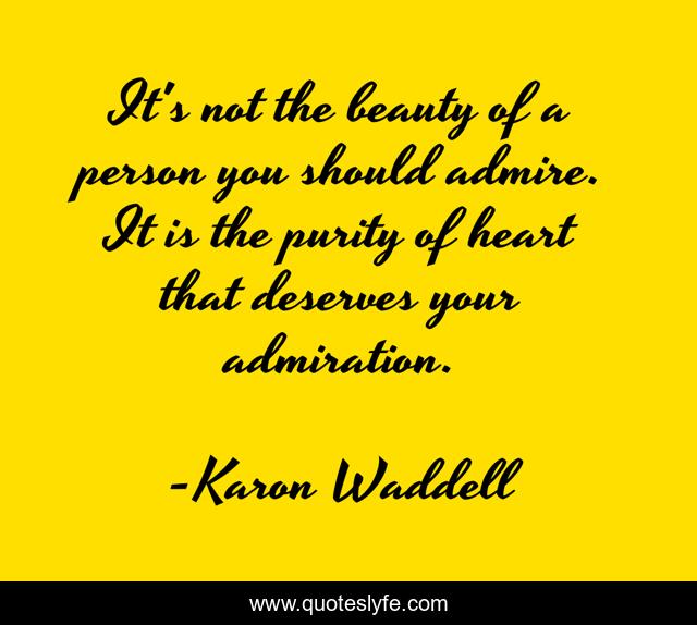 This page presents the quote "It's not the beauty of a person you should admire. It is the purity of heart that deserves your admiration.". Author of this quote is Karon Waddell. This quote is about heart, admirable-qualities, admiration, life, beauty,.