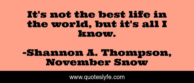 This page presents the quote "It's not the best life in the world, but it's all I know.". Author of this quote is Shannon A. Thompson, November Snow. This quote is about living, life, lifestyle,.