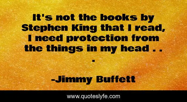This page presents the quote "It's not the books by Stephen King that I read, I need protection from the things in my head . . .". Author of this quote is Jimmy Buffett. This quote is about horror, humor,.