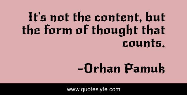 This page presents the quote "It's not the content, but the form of thought that counts.". Author of this quote is Orhan Pamuk. This quote is about content, thought, what-counts,.