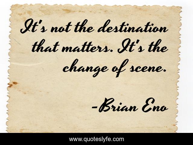 This page presents the quote "It's not the destination that matters. It's the change of scene.". Author of this quote is Brian Eno. This quote is about matters, destination, scene,.