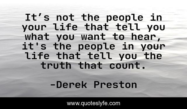 This page presents the quote "It’s not the people in your life that tell you what you want to hear, it's the people in your life that tell you the truth that count.". Author of this quote is Derek Preston. This quote is about life, honesty, truth, people,.