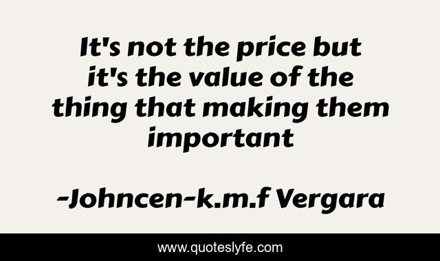 This page presents the quote "It's not the price but it's the value of the thing that making them important". Author of this quote is Johncen-k.m.f Vergara. This quote is about love-of-a-thing, knowledge, treasure, value, wisdom, truth,.