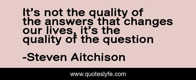 This page presents the quote "It’s not the quality of the answers that changes our lives, it’s the quality of the question". Author of this quote is Steven Aitchison. This quote is about confidence, inspirational, positive, motivational, optimistic, questions, enthusiasm,.