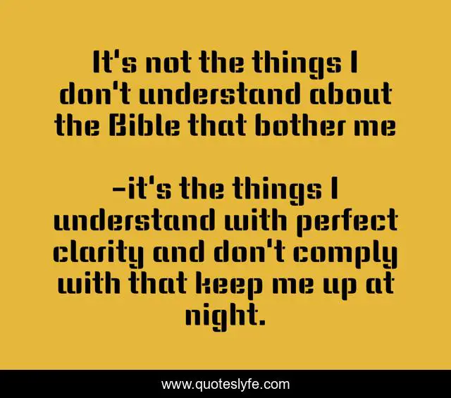 This page presents the quote "It's not the things I don't understand about the Bible that bother me". Author of this quote is it's the things I understand with perfect clarity and don't comply with that keep me up at night.. .