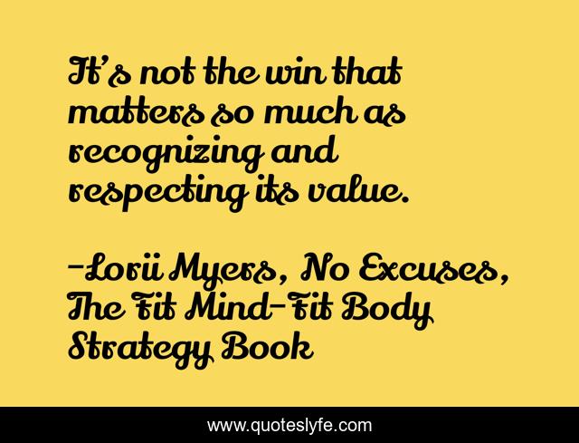 This page presents the quote "It’s not the win that matters so much as recognizing and respecting its value.". Author of this quote is Lorii Myers, No Excuses, The Fit Mind-Fit Body Strategy Book. This quote is about respect, value, winning,.