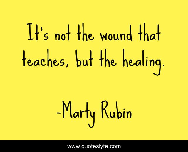 This page presents the quote "It's not the wound that teaches, but the healing.". Author of this quote is Marty Rubin. This quote is about suffering, strength, healing, learning,.