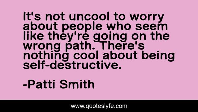 This page presents the quote "It's not uncool to worry about people who seem like they're going on the wrong path. There's nothing cool about being self-destructive.". Author of this quote is Patti Smith. This quote is about path, worry, people,.