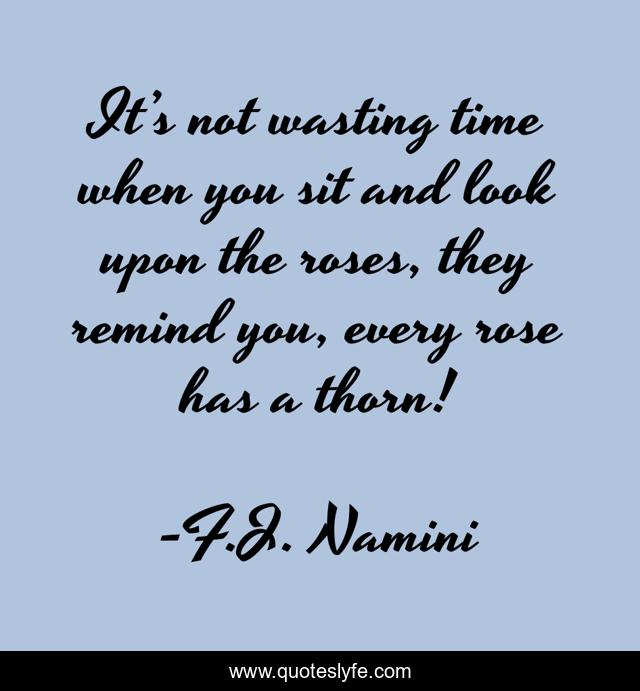 This page presents the quote "It’s not wasting time when you sit and look upon the roses, they remind you, every rose has a thorn!". Author of this quote is F.J. Namini. This quote is about quotes-to-live-by, life-lessons,.