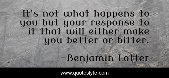 This page presents the quote "It's not what happens to you but your response to it that will either make you better or bitter.". Author of this quote is Benjamin Lotter. .