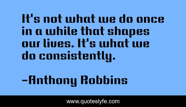 This page presents the quote "It's not what we do once in a while that shapes our lives. It's what we do consistently.". Author of this quote is Anthony Robbins. This quote is about perseverance, confidence, positive, motivational, optimistic, consistency,.