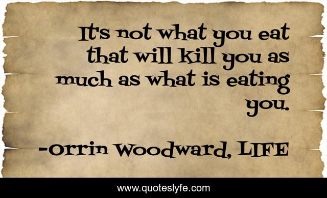 This page presents the quote "It's not what you eat that will kill you as much as what is eating you.". Author of this quote is Orrin Woodward, LIFE. This quote is about behaviour, attitude, leadership,.