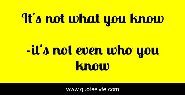 "it's not even who you know Quotes." Quoteslyfe.com, 2025. Fri. 05 Dec. 2025. <https://www.quoteslyfe.com/quote/It-s-not-what-you-know-157806>.
