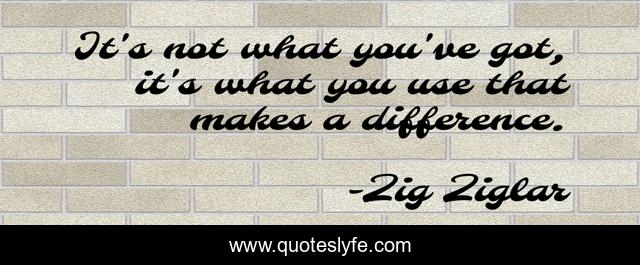 This page presents the quote "It's not what you've got, it's what you use that makes a difference.". Author of this quote is Zig Ziglar. This quote is about positive, confidence, motivational, optimistic, self-help,.