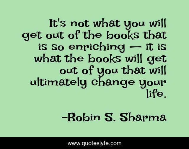 This page presents the quote "It's not what you will get out of the books that is so enriching — it is what the books will get out of you that will ultimately change your life.". Author of this quote is Robin S. Sharma. This quote is about change-your-life, reading,.