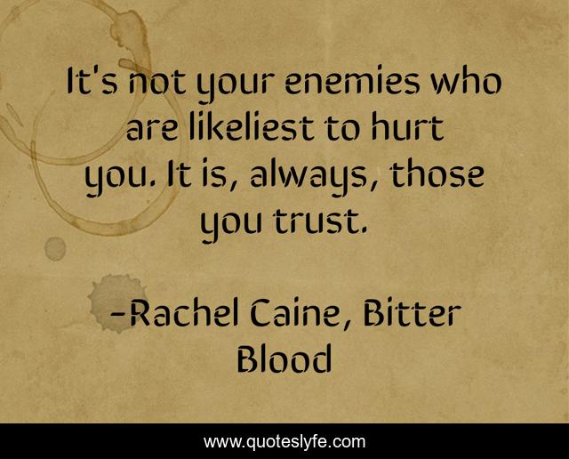 This page presents the quote "It's not your enemies who are likeliest to hurt you. It is, always, those you trust.". Author of this quote is Rachel Caine, Bitter Blood. This quote is about pain, morganville-vampires, myrnin, betrayal, trust, friends,.
