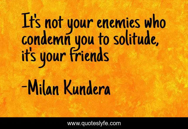 This page presents the quote "It's not your enemies who condemn you to solitude, it's your friends". Author of this quote is Milan Kundera. This quote is about tedium, communism, desperation, solitude, politics, lonliness,.