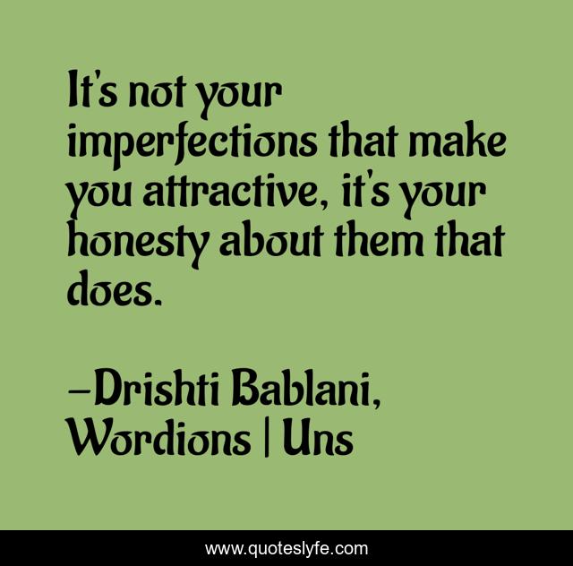 This page presents the quote "It's not your imperfections that make you attractive, it's your honesty about them that does.". Author of this quote is Drishti Bablani, Wordions | Uns. This quote is about wordions-com, drishti-bablani, honesty, wordions, attractive, imperfections,.