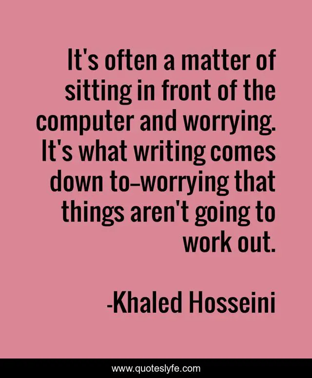 This page presents the quote "It's often a matter of sitting in front of the computer and worrying. It's what writing comes down to--worrying that things aren't going to work out.". Author of this quote is Khaled Hosseini. This quote is about inspiration, writing,.