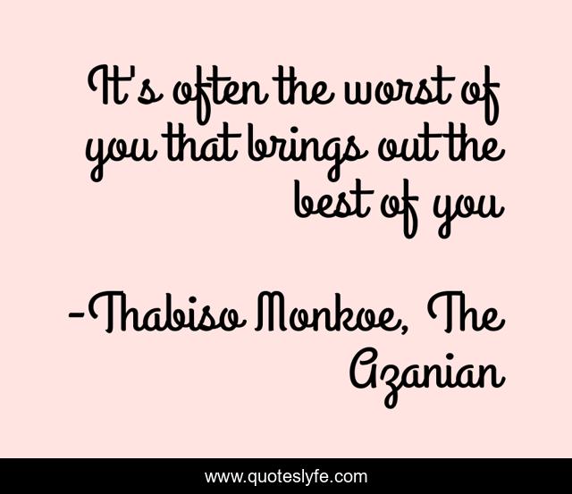 This page presents the quote "It's often the worst of you that brings out the best of you". Author of this quote is Thabiso Monkoe, The Azanian. .