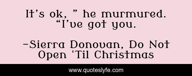 "Sierra Donovan, Do Not Open 'Til Christmas Quotes." Quoteslyfe.com, 2025. Mon. 08 Dec. 2025. <https://www.quoteslyfe.com/quote/It-s-ok-he-murmured-I-ve-154637>.