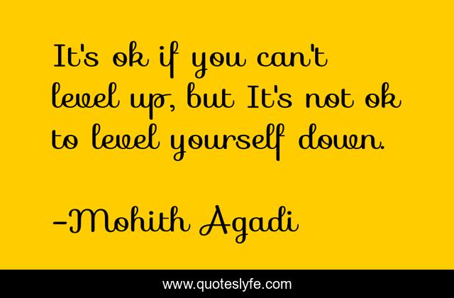 This page presents the quote "It's ok if you can't level up, but It's not ok to level yourself down.". Author of this quote is Mohith Agadi. This quote is about life, quote, quotes, live, mohith-agadi, quotes-by-mohith,.