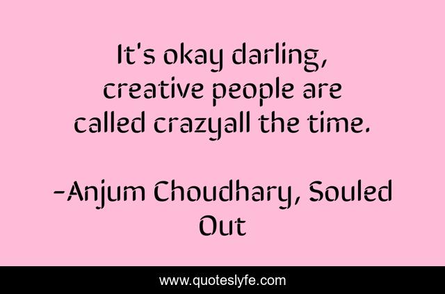 "Anjum Choudhary, Souled Out Quotes." Quoteslyfe.com, 2025. Tue. 09 Dec. 2025. <https://www.quoteslyfe.com/quote/It-s-okay-darling-creative-people-are-47617>.